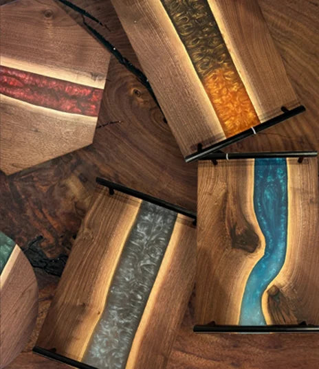 Join our hands-on epoxy pouring workshops and design a one-of-a-kind board. Choose your wood, pick your colors, and pour your own unique creation — no experience needed!